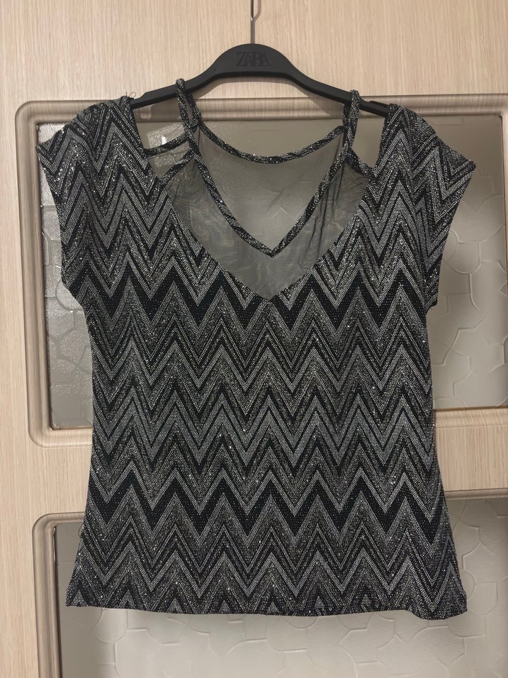 Işıltılı taşlı tül detaylı bluz