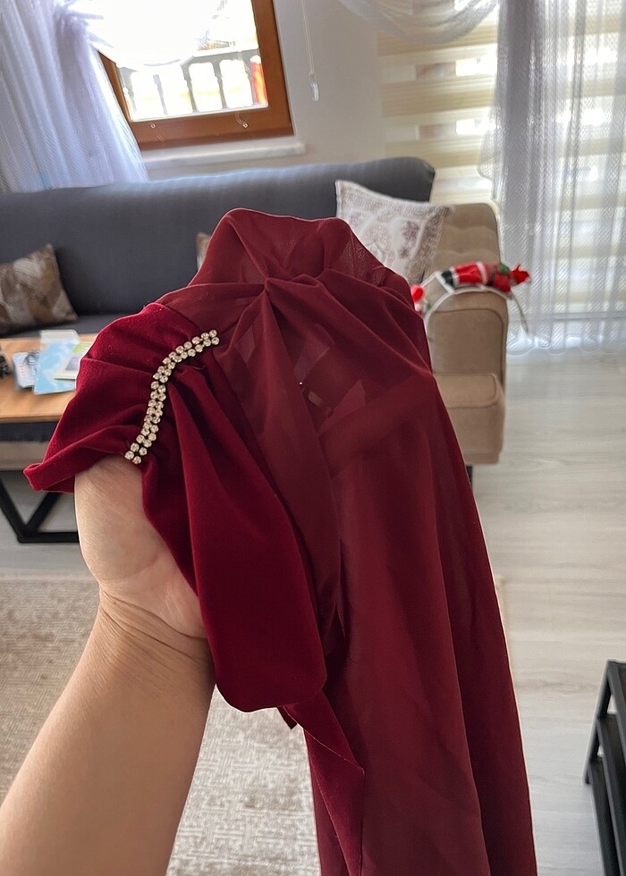 Taşlı büzgülü abiye şifon şal