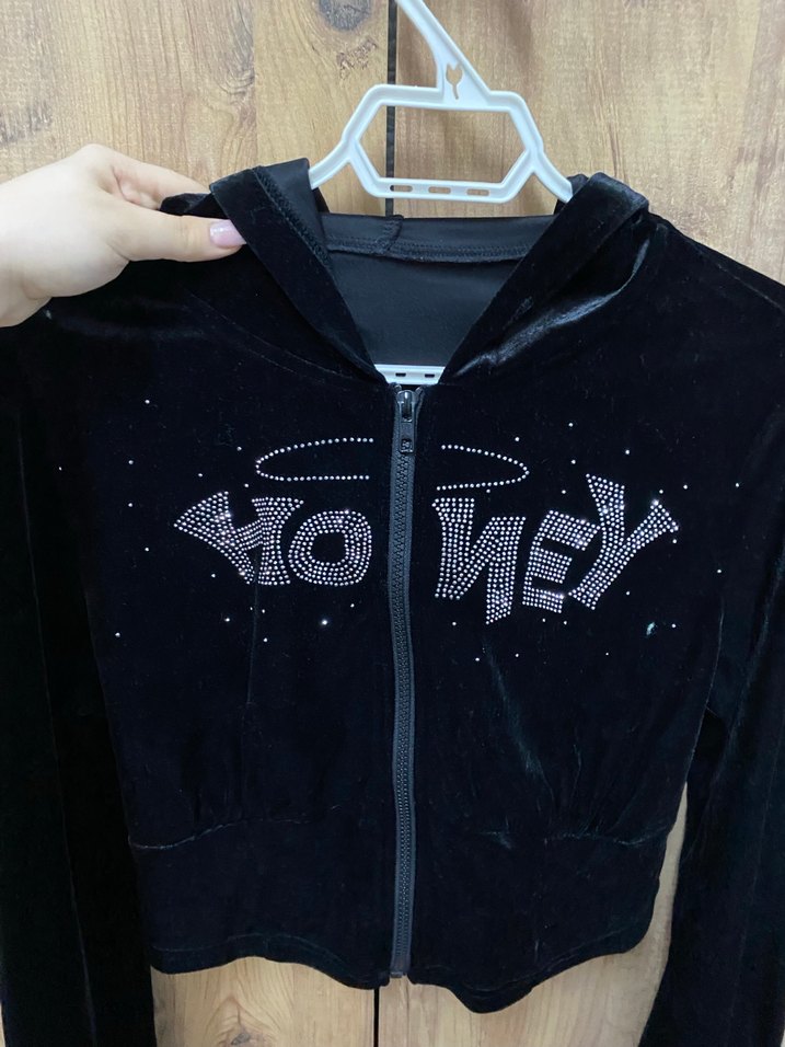 Siyah, uzun kollu, fermuarlı, nakış detaylı midi uzunlukta, sentetik kumaştan yapılmış, dar kesim kadın ceket. Kadifedir bir kere giyilmiştir