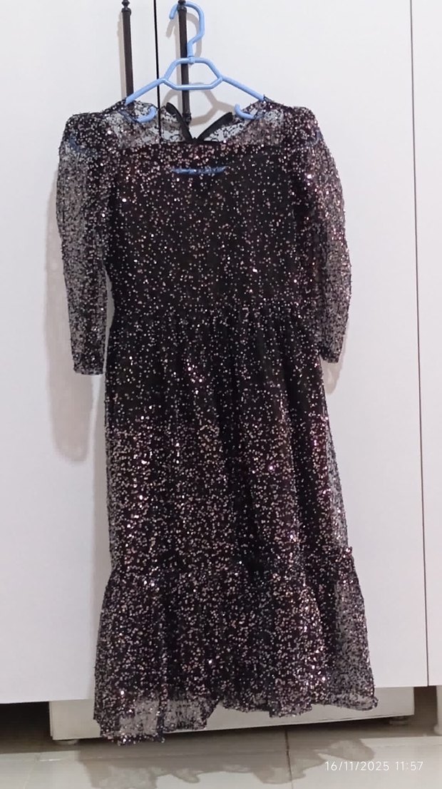 Boncuklu çoçuk abiye özel dikim kilo aldığı için küçük geliyor yeni hiçbir sorunu yoktur çok şık bi abiye 5-6-7-8yaş aralığına olur