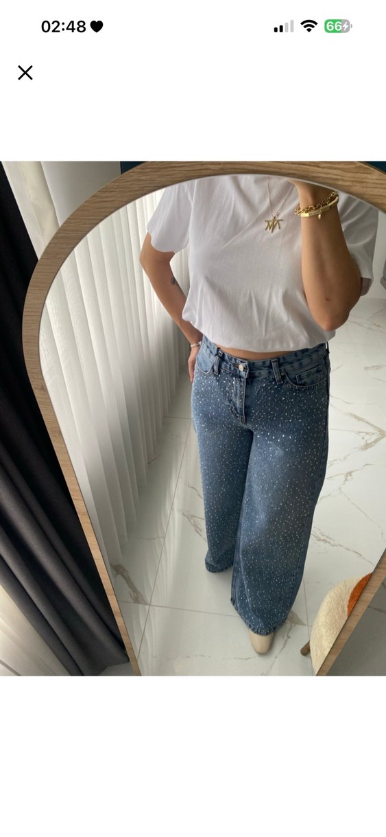 Taşlı Detaylı Bol Kesim Baggy Jean
