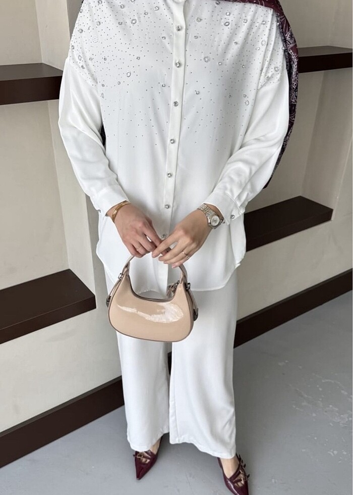 Beyaz taşlı gömlek sm beden rahat kalıp 42 bedene kadar uyumlu sıfır ürün