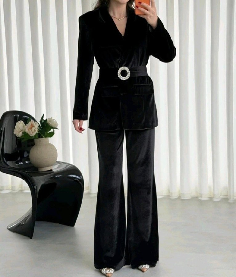Taşlı kadife takım elbise
