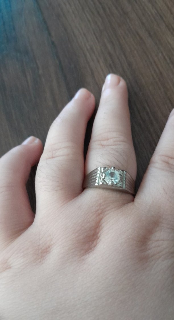 taşlı ve tokalı detaylı gri renkli kadın yüzüğü, romantik akşamlar için uygun.