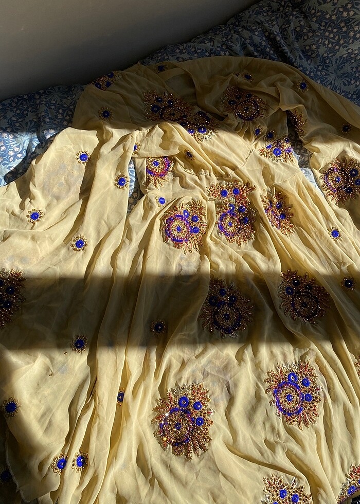 Ürün özel dikimdir. İki takım halinde gelir. Kaftandır. Taşları ağırdır(boncuklar daha çok mevcut.) S/M beden uygundur. Ürünün kemeri vardır.(sarı kumaştan kalın bir kemeri mevcuttur.)