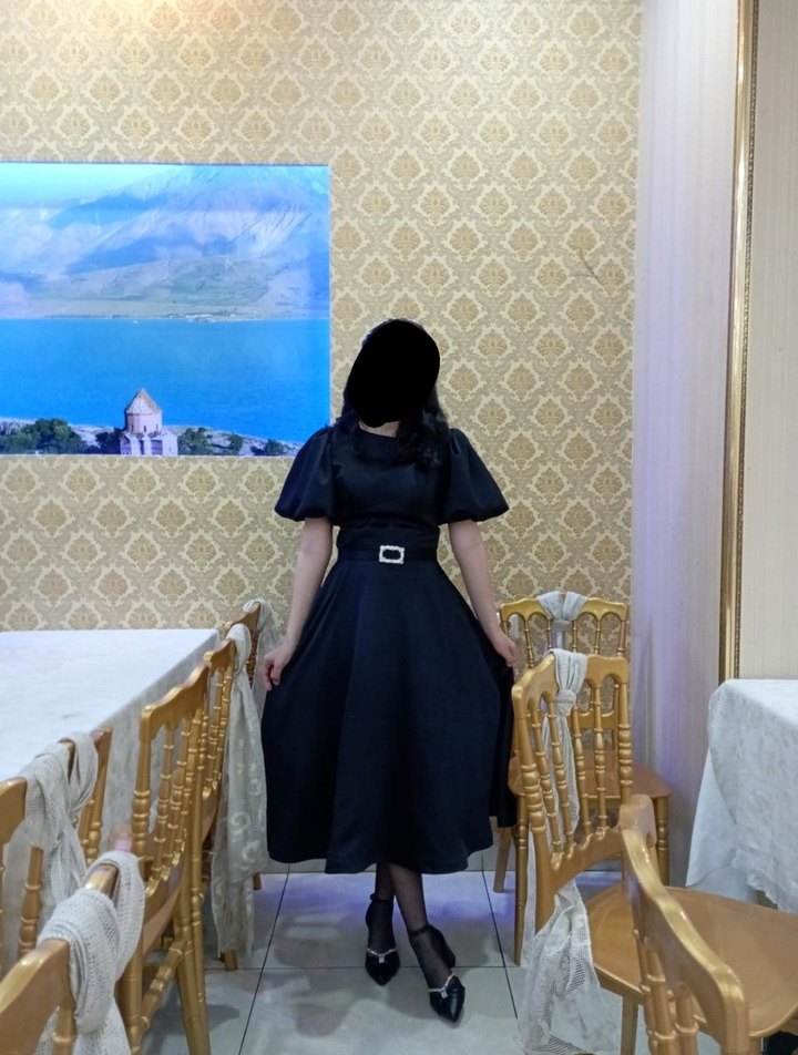 taşlı Kemerli Siyah Uzun Elbise