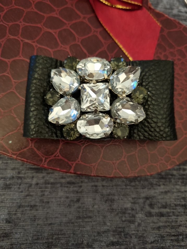 Taşlı Kemerli Yılan Desenli Gri Broş.Deri