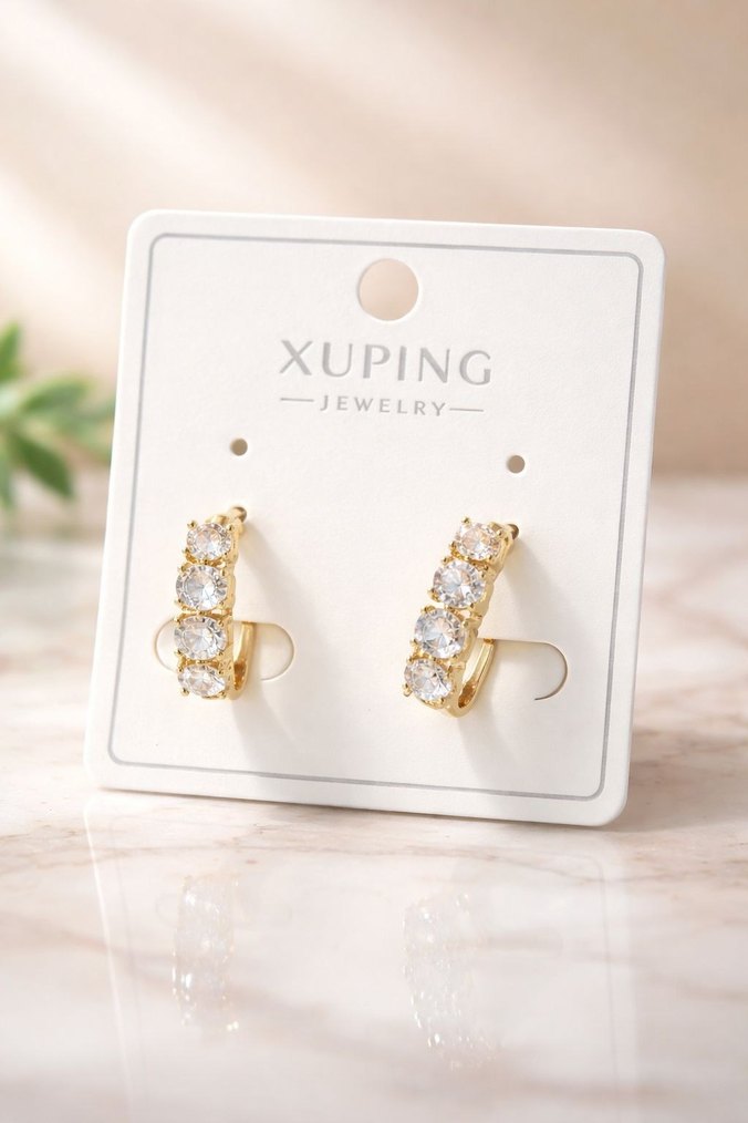 Xuping Jewelry'den altın renk mini küpeler, sıralı parlak taşlar ile klasik ve çağdaş stiller için uygun, düğünlere şık bir dokunuş. ✨