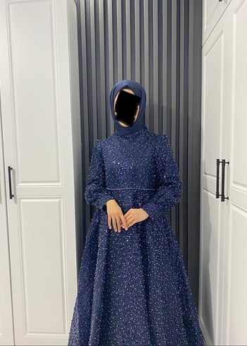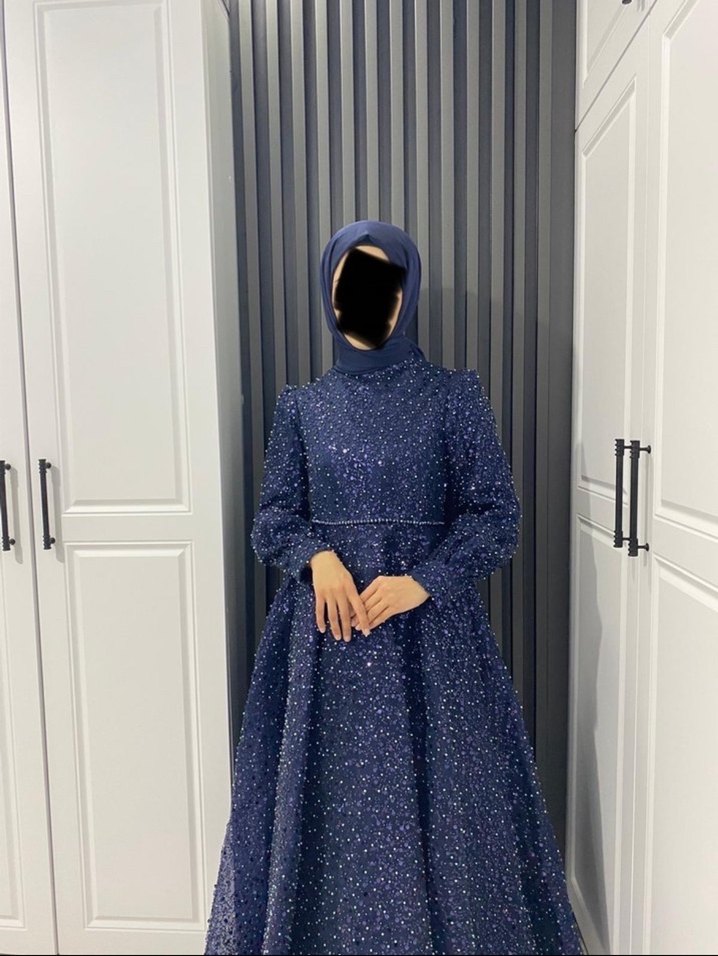 Taşlı Lacivert Eva Tesettür Abiye Elbise