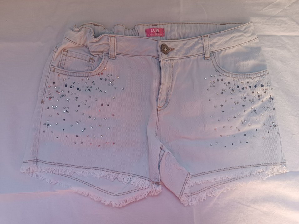 belden ayarlamalı lastiğe sahip 14-15 yaş çocuk şortu (taşlarının bazıları yıkamada düşmüştür)
