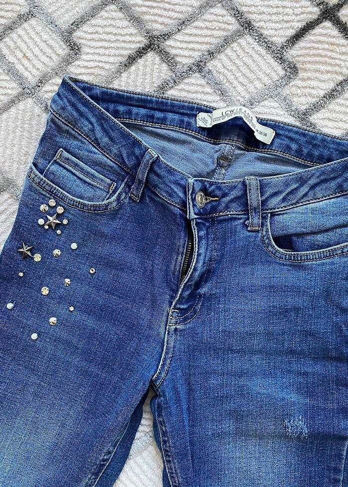 Taşlı mavi kot
