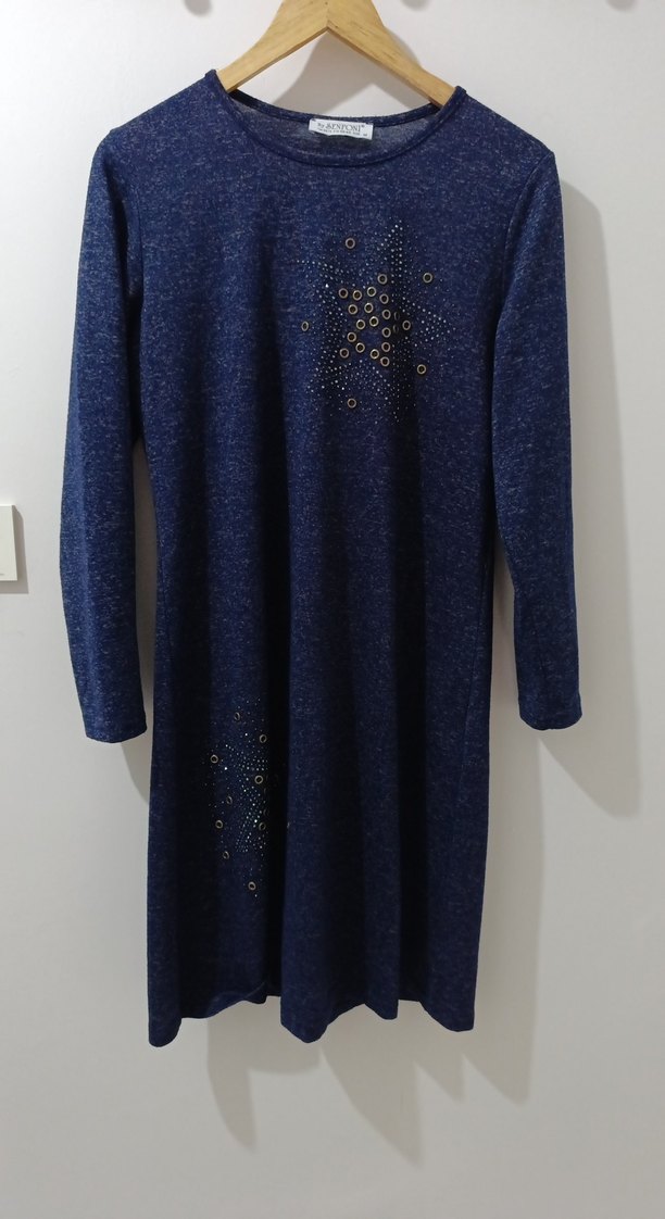 Koyu mavi, uzun kollu, triko dokulu tasllı tunik. Yuvarlak yaka ve bol kesim, yumuşak polar kumaştan rahatlık sağlar. Günlük kullanıma uygundur. hic kullanilmadi