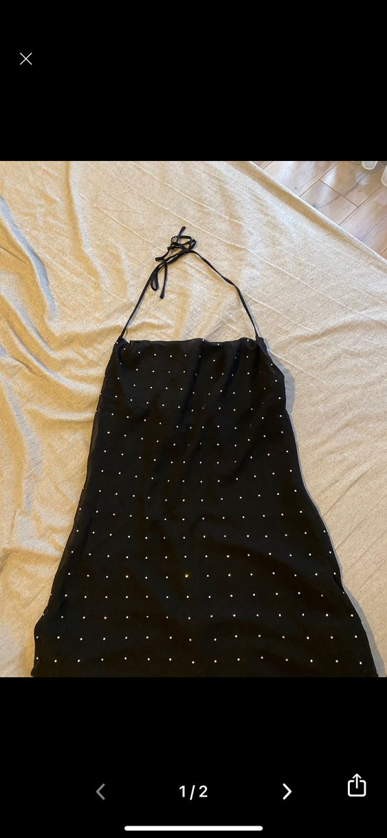 Siyah, halter yaka ve askılı, vücuda oturan gece elbisesi, romantik akşamlar için uygun.