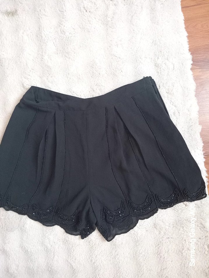 Siyah, dökümlü kesim, ipeksi kumaştan yapılmış ve kenarlarında boncuk işlemeli var boyum kısa olduğu için yakisma gece için çok sık bir parca