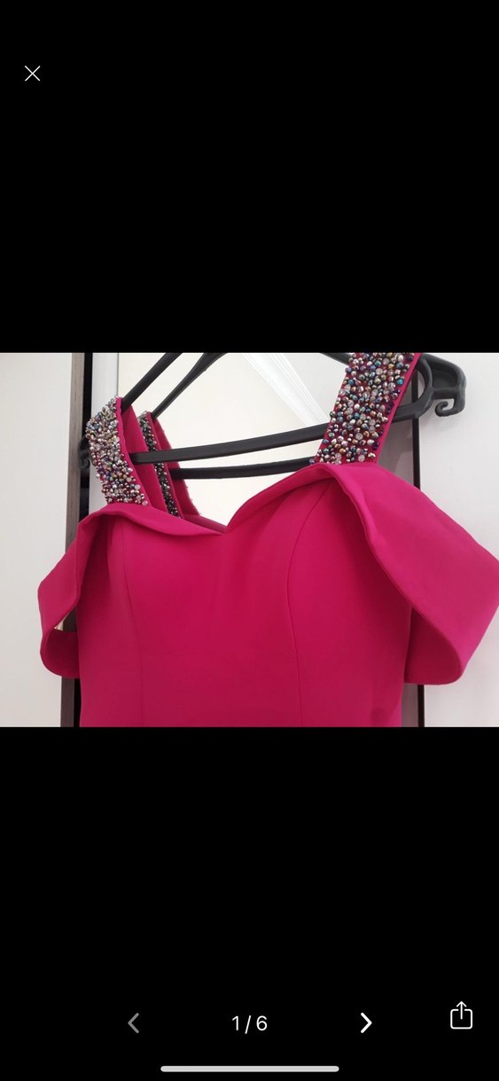 Pullu, kayık yaka ve askılı kol detaylarına sahip, dar kesim mini pembe abiye elbise, gösterişli parti şıklığı için uygundur. ✨
