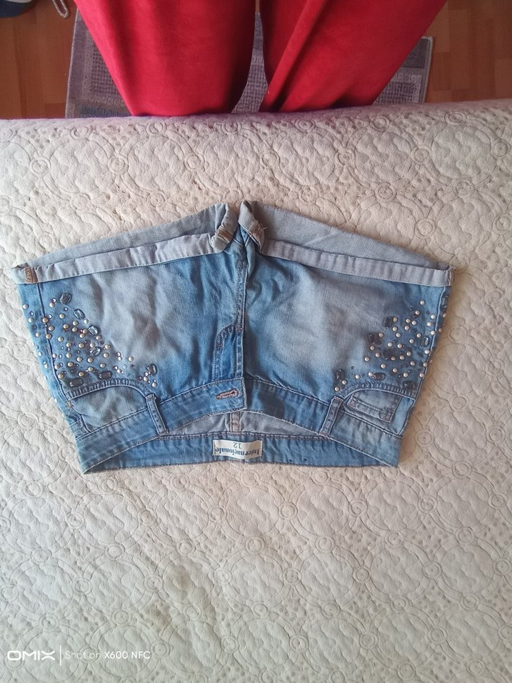 Düğmeli, parlak mavi renkte, kısa ve dar kesim kot şort. Sokak stiline uygun, rahat ve şık bir seçenek.