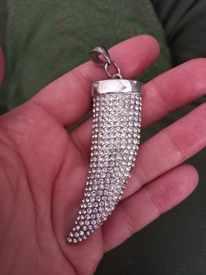 Kolye ucu..Şıkır şıkır parliyor fotolarda yansıtmak çok zor tabi..Tek bir yerde taşı düşmüş o da en sonda yanda oldugu icin taktiginiza görünmüyor..Çok güzel bir parça dediğim gibi çiplak gözle daha parlak ve daha guzel görünüyor