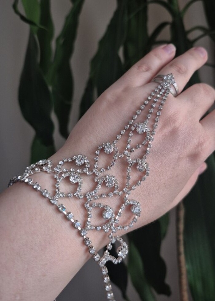 Yüzük kısmı ayarlanabilir abiye kıyafetlerinize çok yakışacak sadece bir kere düğünde kullanıldı sorunsuz temiz üründür düğün kına vb kullanılabilecek şık parça tavsiye ederim Hijyen nedeniyle iade ve değişim yoktur!!! özenle gönderilir #şahmeran