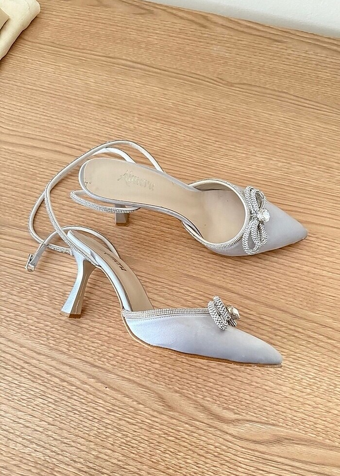 Taşlı saten kadın topuklu ayakkabısı
