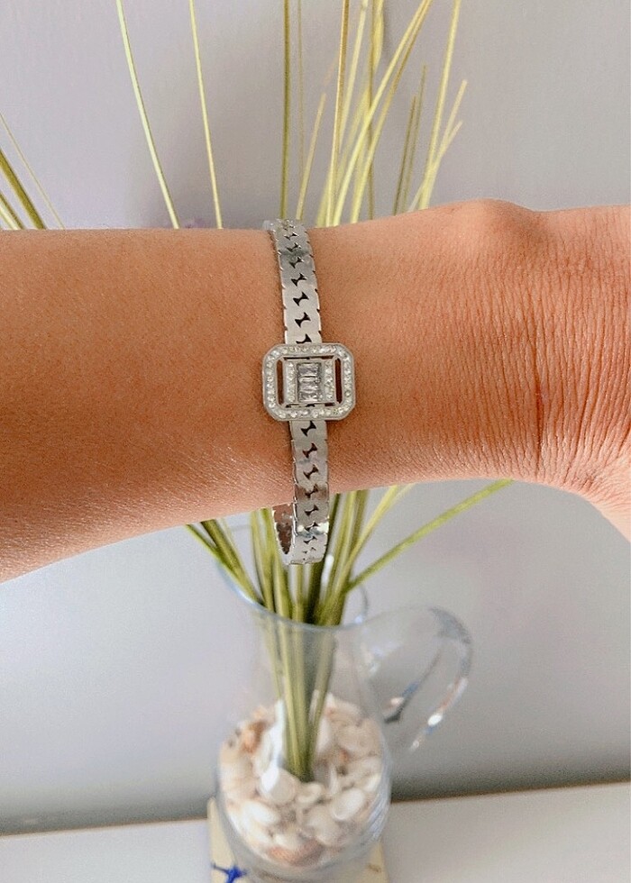 Taşlı şık çelik kelepçe