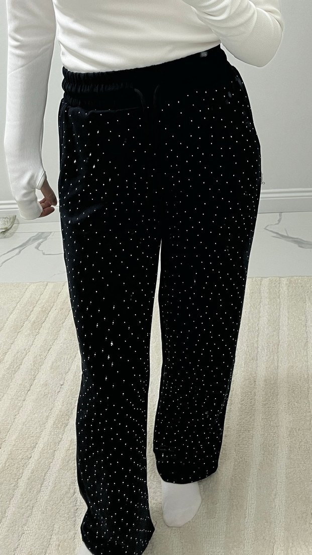 Taşlı Siyah Desenli Rahat Kesim Pantolonu