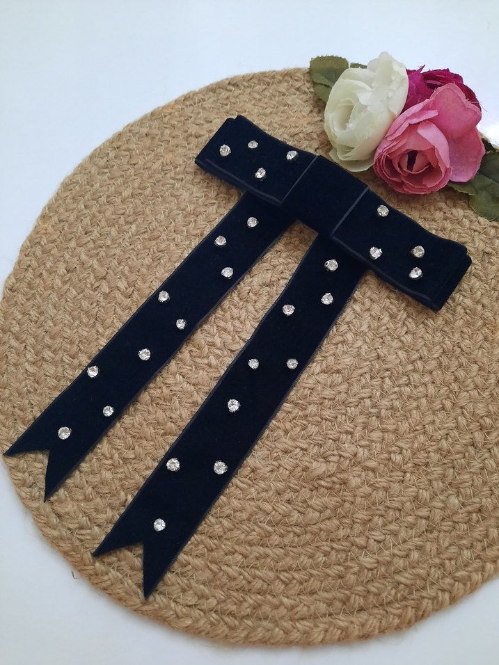 Taşlı Siyah Kadife Kurdele Saç Aksesuarı