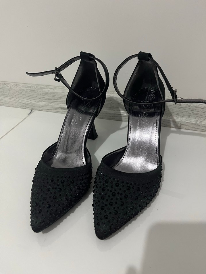 Taşlı siyah topuklu ayakkabı 37 numara iki kere kullandım