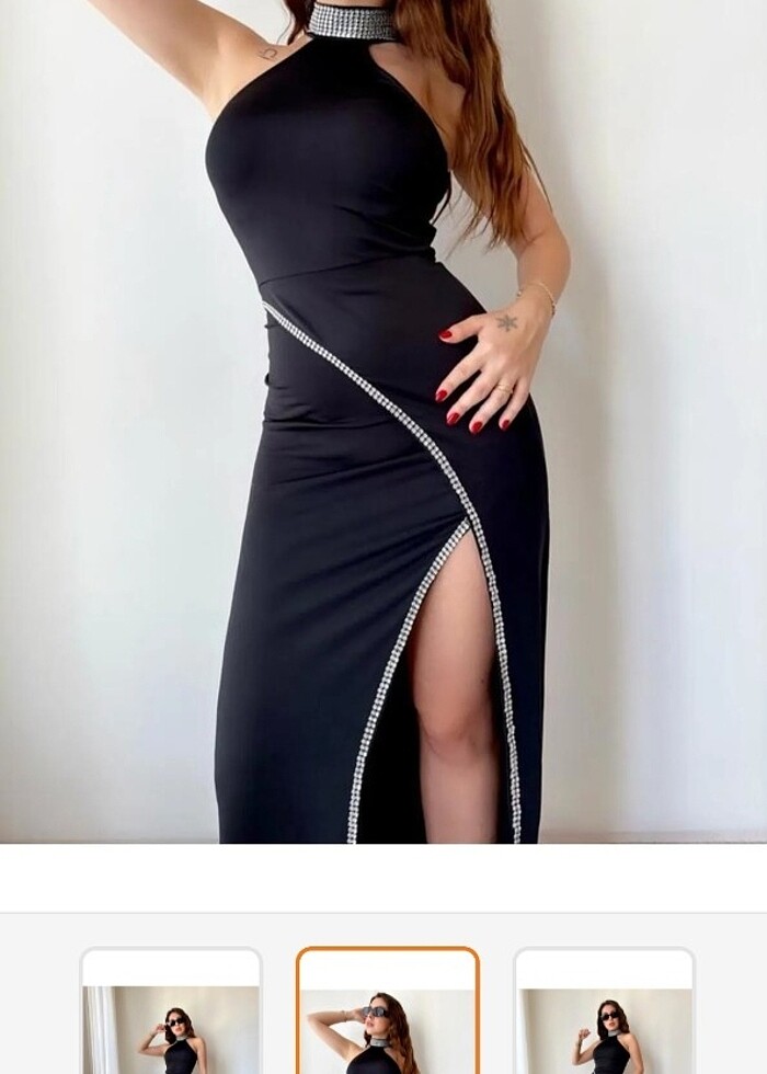 Taşlı siyah yırtmaçlı abiye