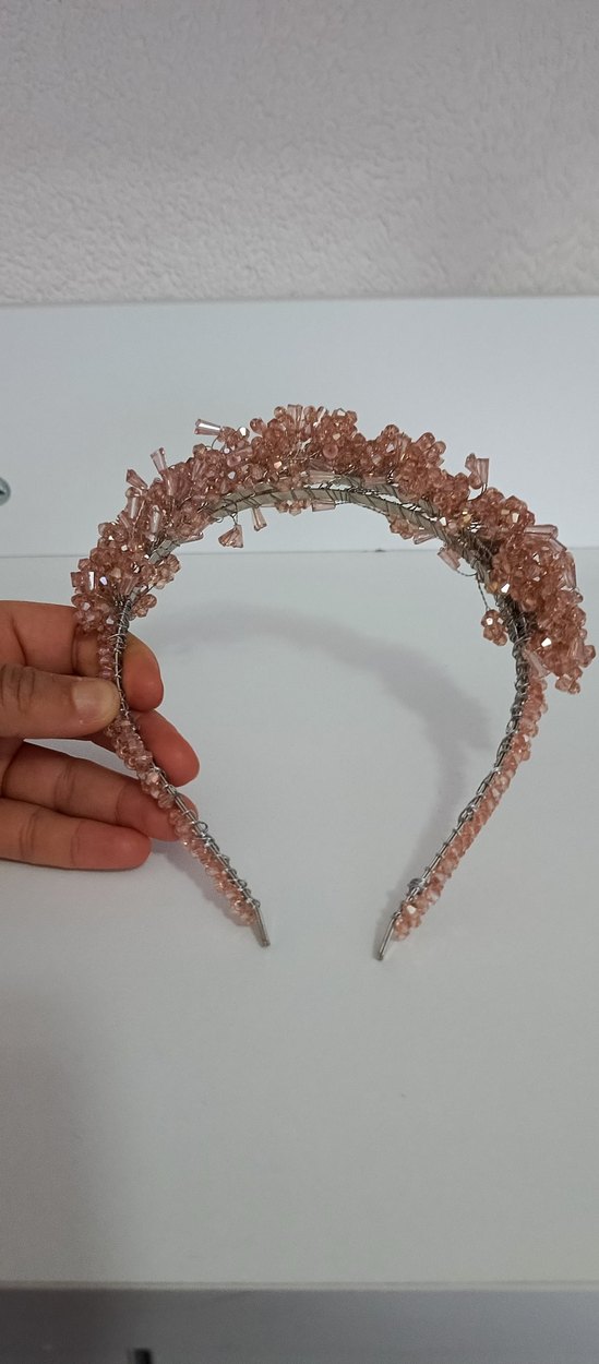 Bej renkte cam boncuklarla süslenmiş bohem tarzda, gösterişli ve retro bir taç. Sadece Oğlumun sünnetinde 2 saat kullandım