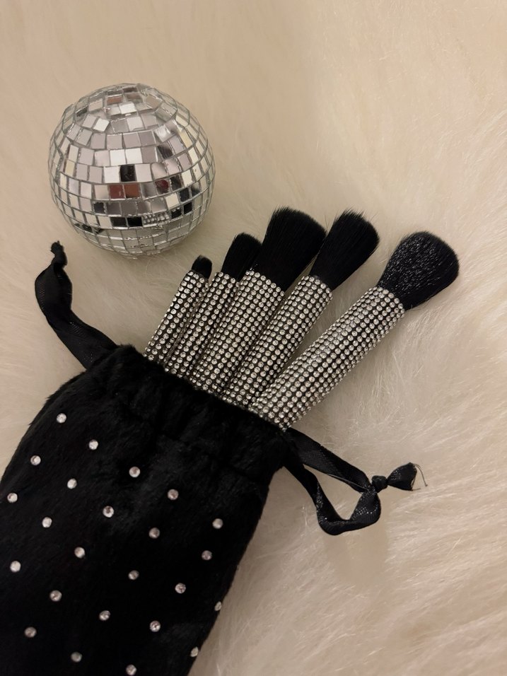 Kristal taşlı tasarım 5 adet makyaj fırçası ve 1 adet taşlı makyaf fırça kılıfı