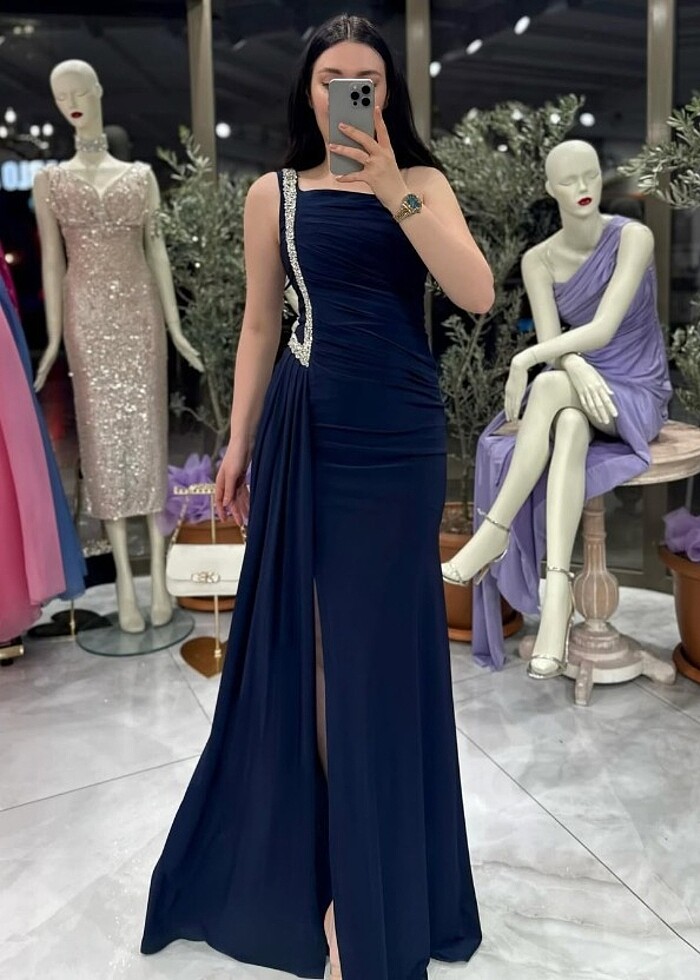 Taşlı tek kol abiye