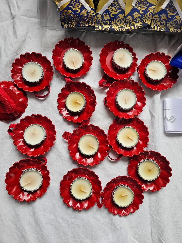 14 adet lastikli el mumu yanları parlak taşlı el yakmaz tepsisilidir