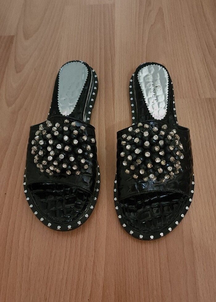 2-3 kez giydim hassas ürün oldugu icin bazi taslar döküldü asiri rahat markasi yaziyir icinde replica ürün A kalite kenarları taşlı topuk kısmı 3 cm fln yukarıda çok şık ve rahat bir ürün derisi A kalite ve yumuşacık, terlik giymeyi pek sevmediğimden satıyorum