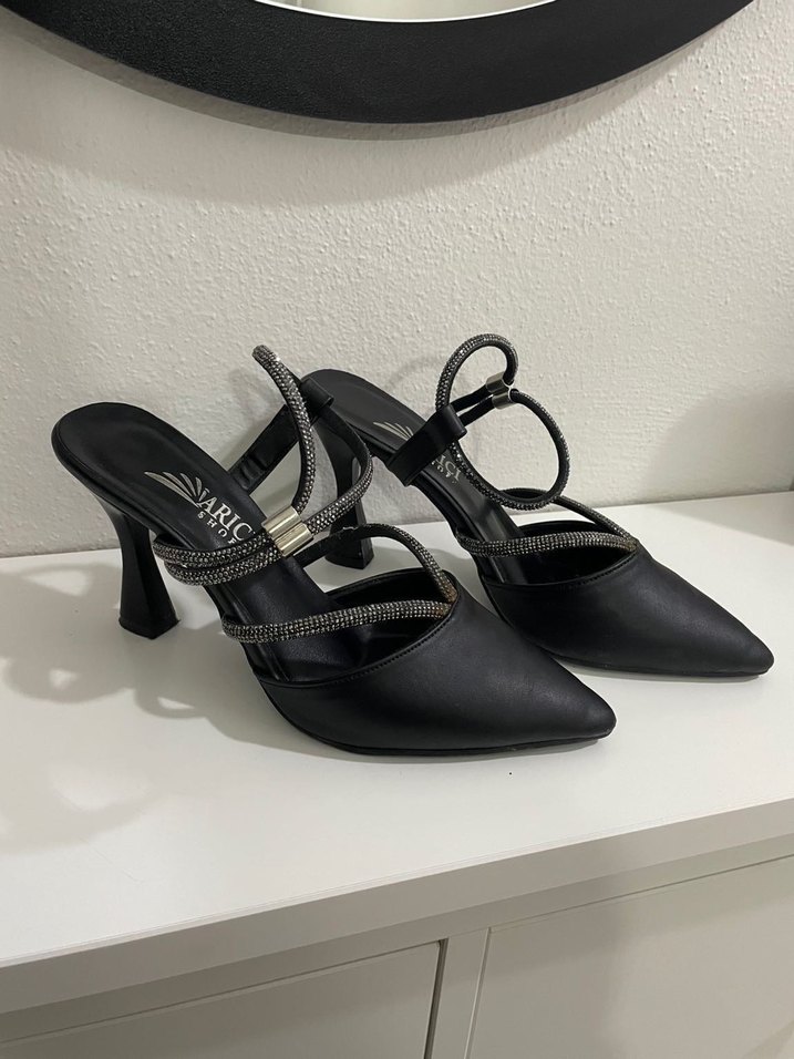 Parlak taşlı topuklu ayakkabı