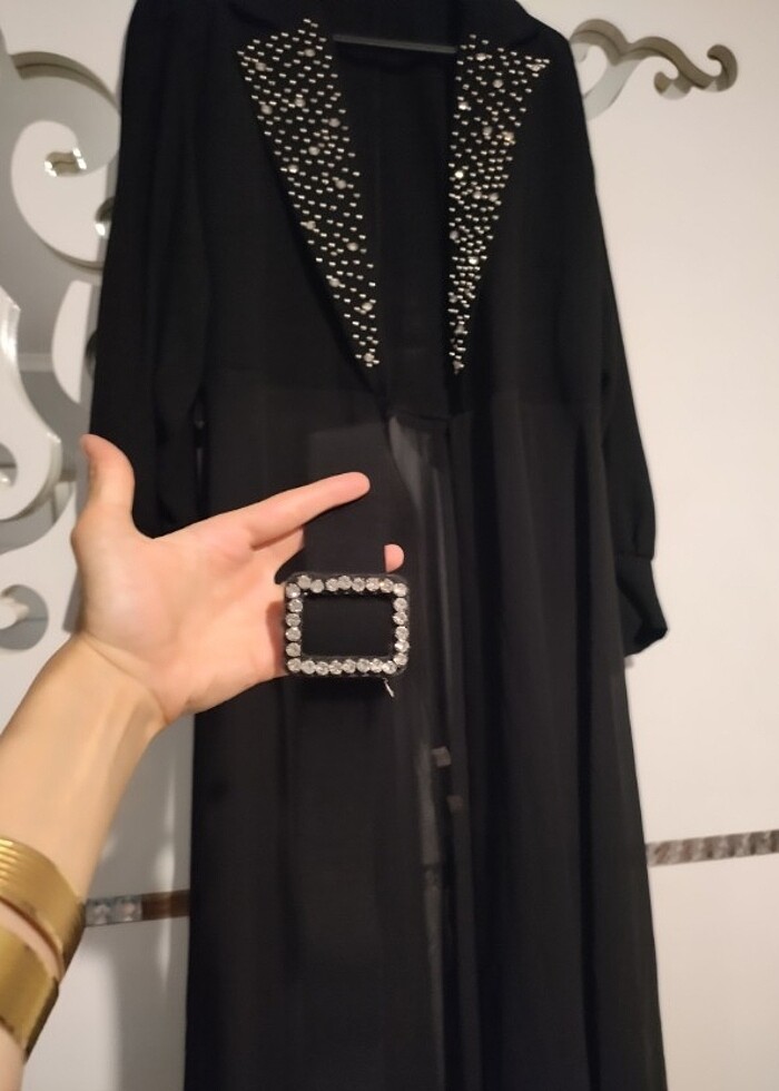 Taşlı ve kemerli abaya