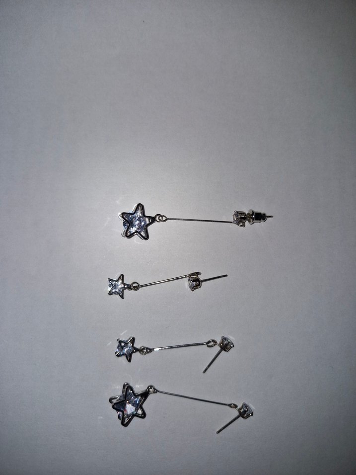 Taşlı yıldız küpeler, minimalist ve normcore tarzda. Parti için uygun, midi uzunluğunda, trendsetter ve avangart moda sevenlere uygun. Arkası olmadığı için uyguna satıyorum ✨️