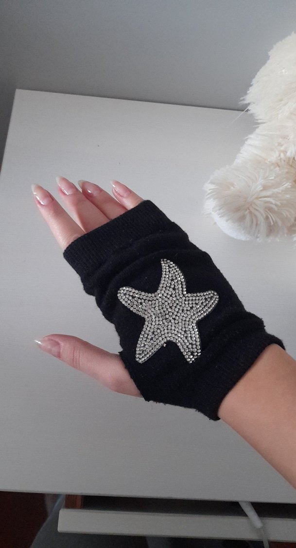 Taşlı Yıldızlı Siyah Parmaksız Kadın/Çocuk Eldiveni