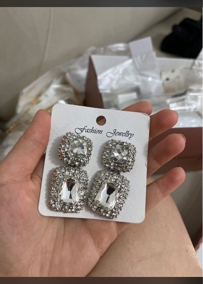 Düğün, balo ve gecelerinize; özel anlarınıza şıklık katacak gümüş taşlı bujiteri küpe.