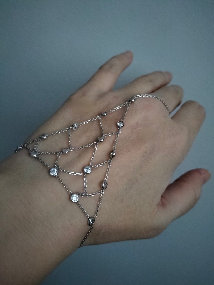 Taş detaylarla süslenmiş zincirden oluşan üçgen şeklinde gümüş şahmeran, gündelik ve özel anlar için şık bir aksesuar. Ürün sıfırdır, hiç kullanılmadı.