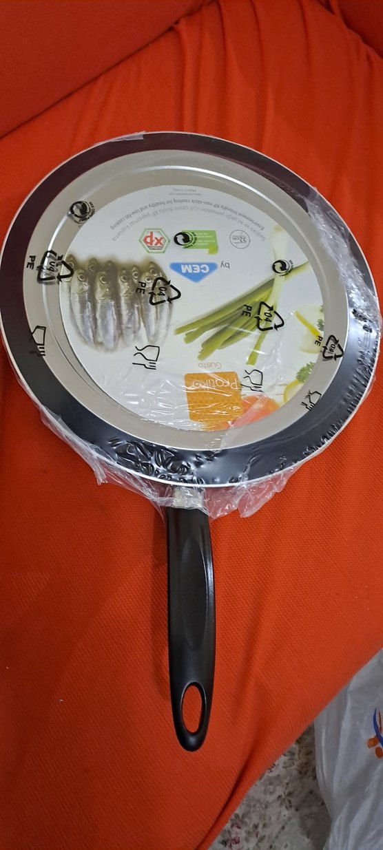 Gri teflon kaplı yüzeyi ve turuncu sapı ile çeşitli yemekler için uygun tava.