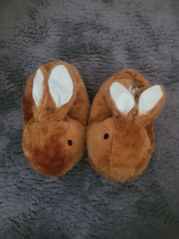 Kızlar için kahverengi, tavşan figürlü, işleme detaylı ve kürk süslemeli yumuşak kumaştan sıcak ev terliği.