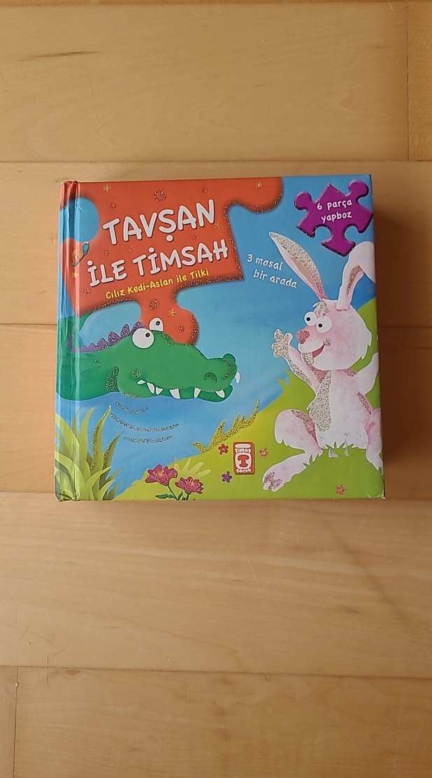 Bu çocuk kitabı, üç masal ve altı parçalı 6 adet yapboz içerir. her sayfasında bir yapboz bulunur. Tavşan ile timsah, ciliz kedi ve aslan ile tilki masallarını barındırır.