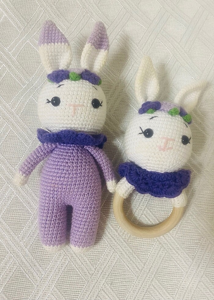 Amigurumi Tavşan set Bebek ve diş kaşıyıcı hafif leke olduğu için fiyatı uygun tuttum