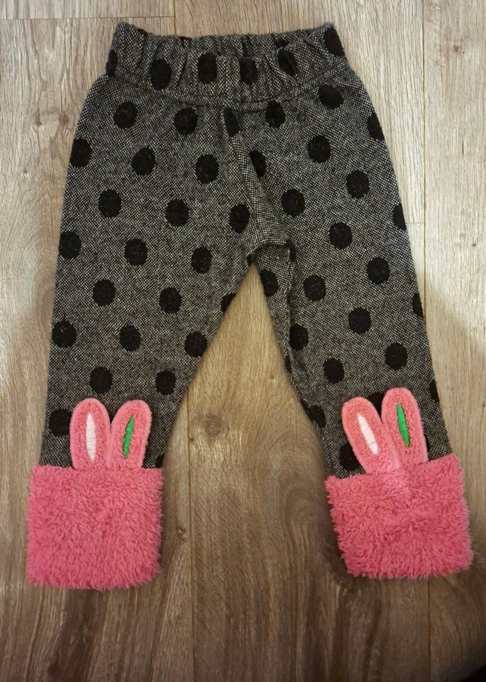 Tavşanlı Tüylü Siyah Gri Puantiye Tayt Çocuk Bebek