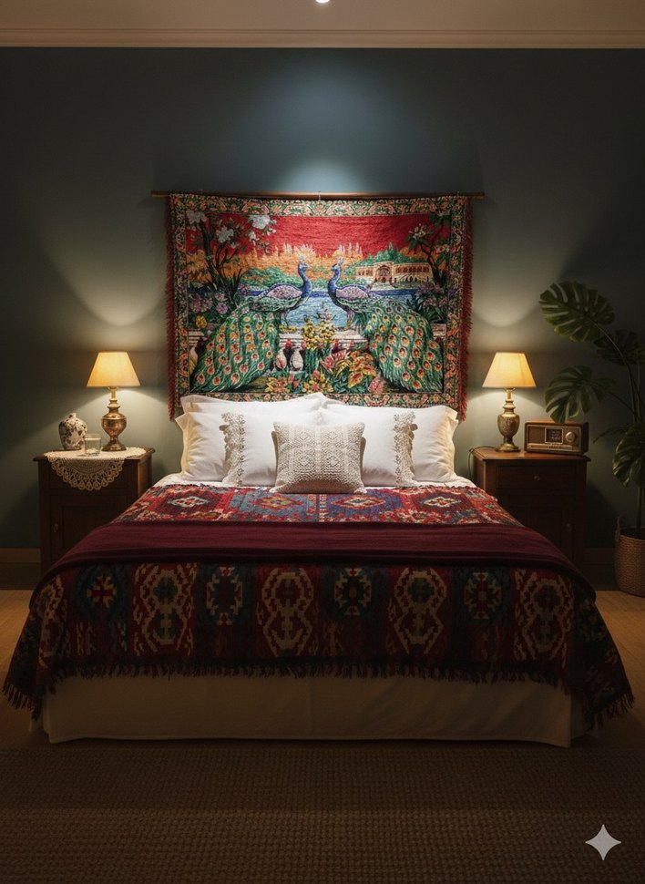 TAVUSKUŞLU İPEK KADİFE DUVAR HALISI