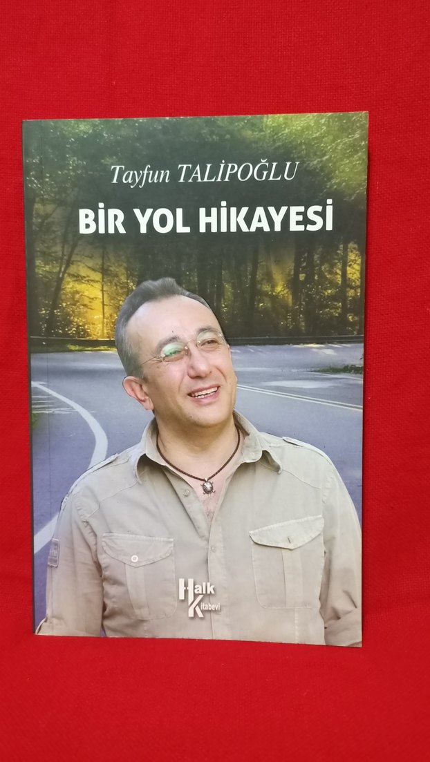 Tayfun Talipoğlu'nun 'Bir Yol Hikayesi' adlı kitabı, ormanlık bir yol önünde gülümseyen yazarın fotoğrafını içeriyor. Kişisel bir yol hikayesi sunuyor. Kitap orjinal bandrollü ve sıfır ayarında piyasada baskısı bulunmayan nadir kitaplardan
