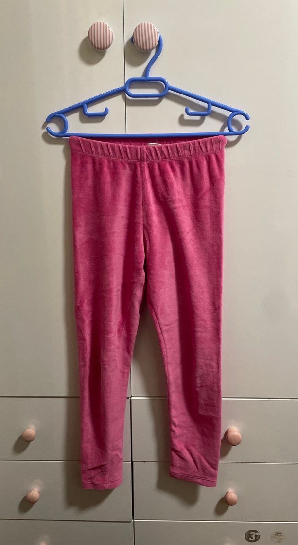 Elastik bel bantlı, yumuşak ve sıcak kumaştan yapılmış pembe, dar kesim kız çocuk taytı. Düz ve sade normcore tarzda. 9-10 yaş