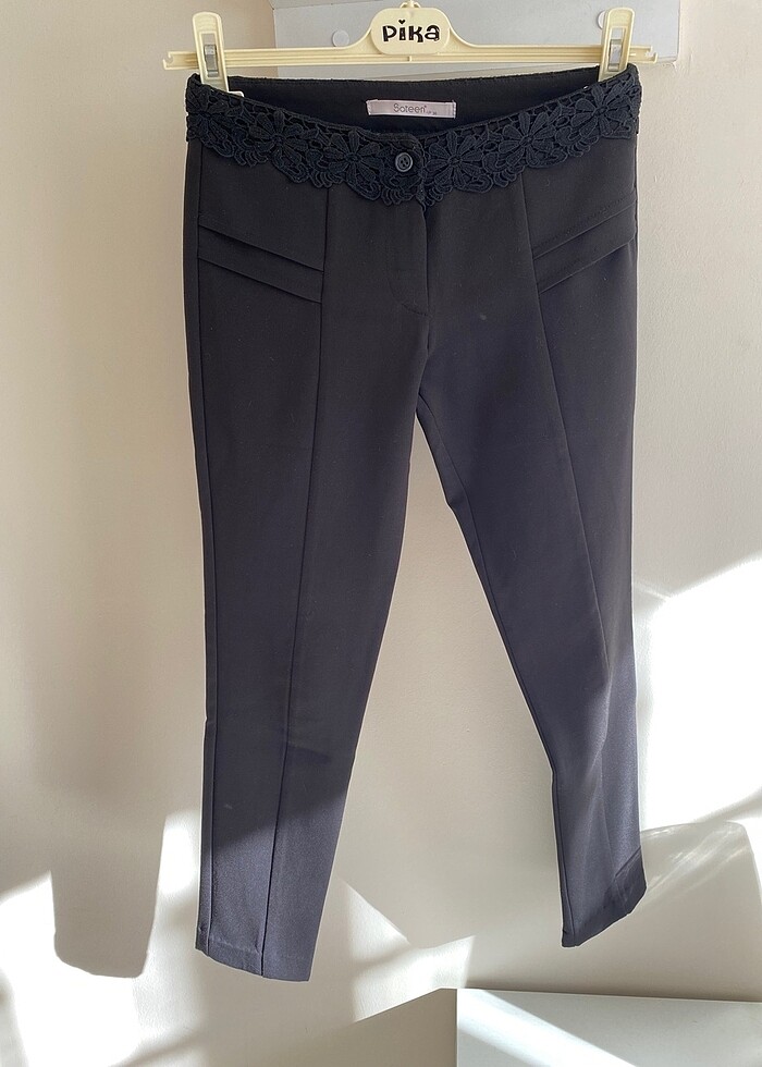 Bel kısmı güpürlü dar kumaş pantolon