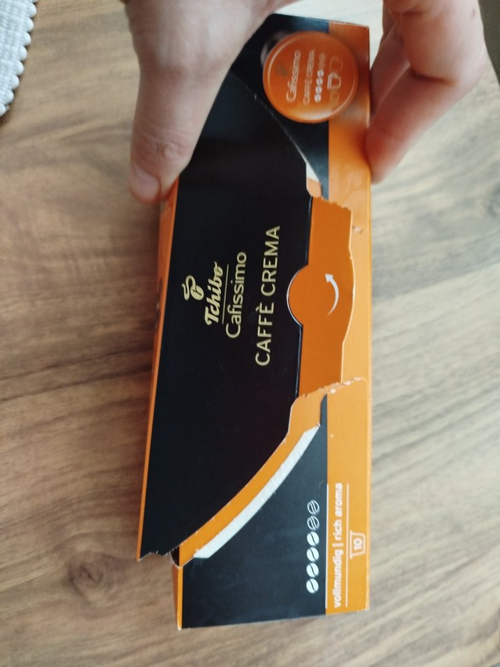 Tchibo Cafissimo Caffè Crema kahve kapsülleri, koyu kamel renkli kutuda. Cafissimo makinelerle uyumlu, 10 kapsül içerir ☕.yanlış almışız işime yaramıyor hiç kullanmadık