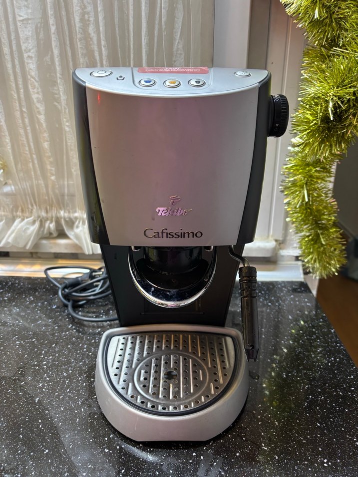 Gri renkte Cafissimo kahve makinesi, kullanımı kolay düğmeler ve damlama tepsisiyle kompakt tasarıma sahiptir. Espresso ve diğer kahveler için uygundur. ☕Temiz sorunsuz çalışmaktadır.Süt köpürtme özelliği ile birbirinden farklı kahveler yapapabilirsiniz.